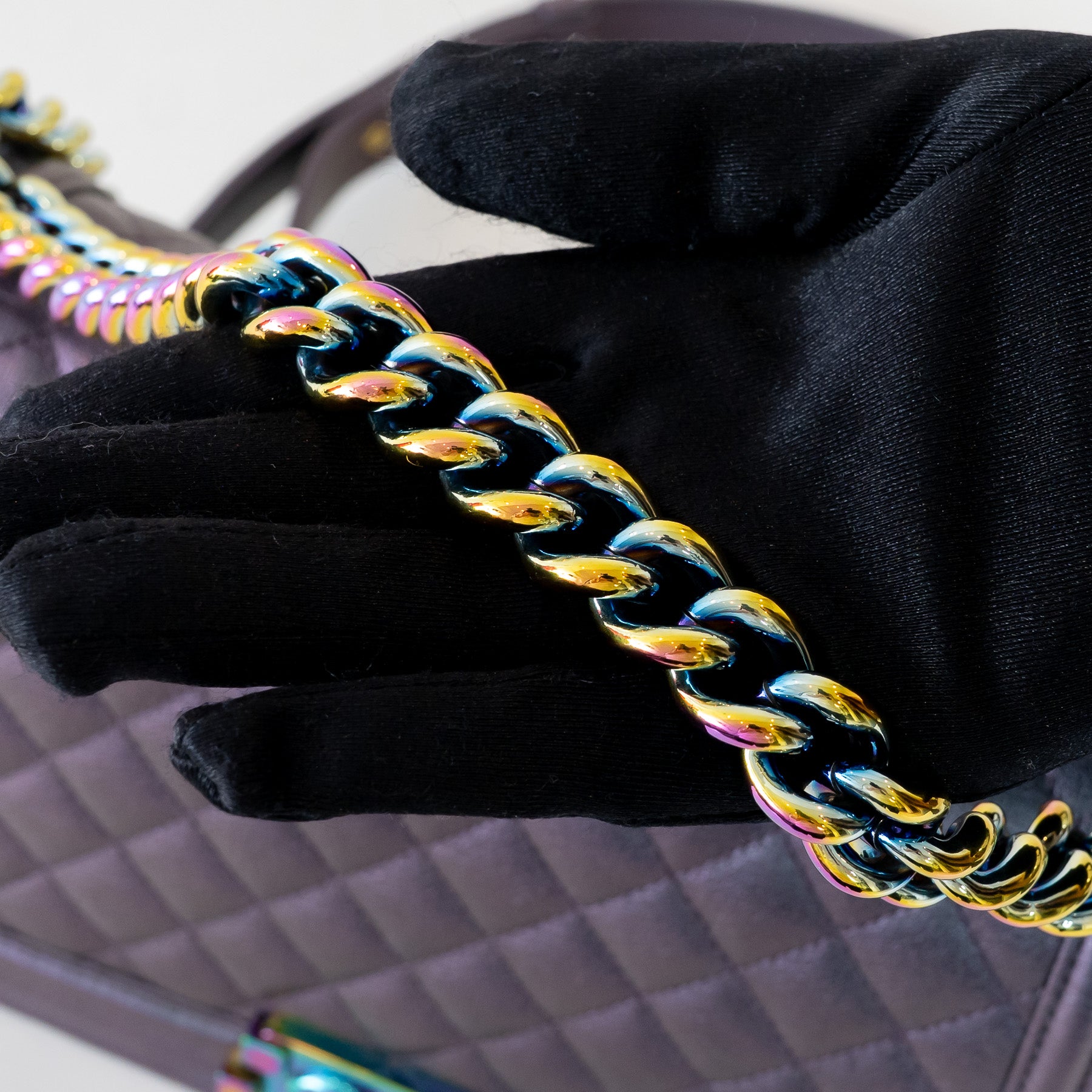 Pre-Loved Chanel™ Grey Iridescent Callfskin Leather Medium Boy Bag