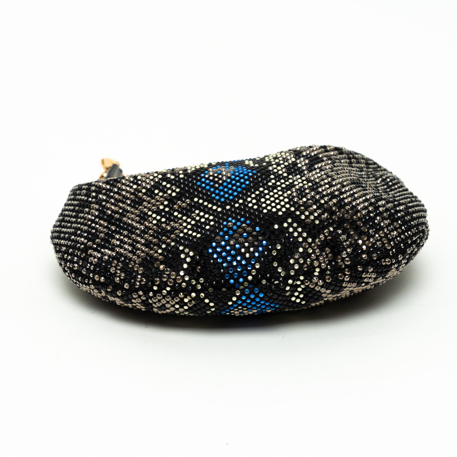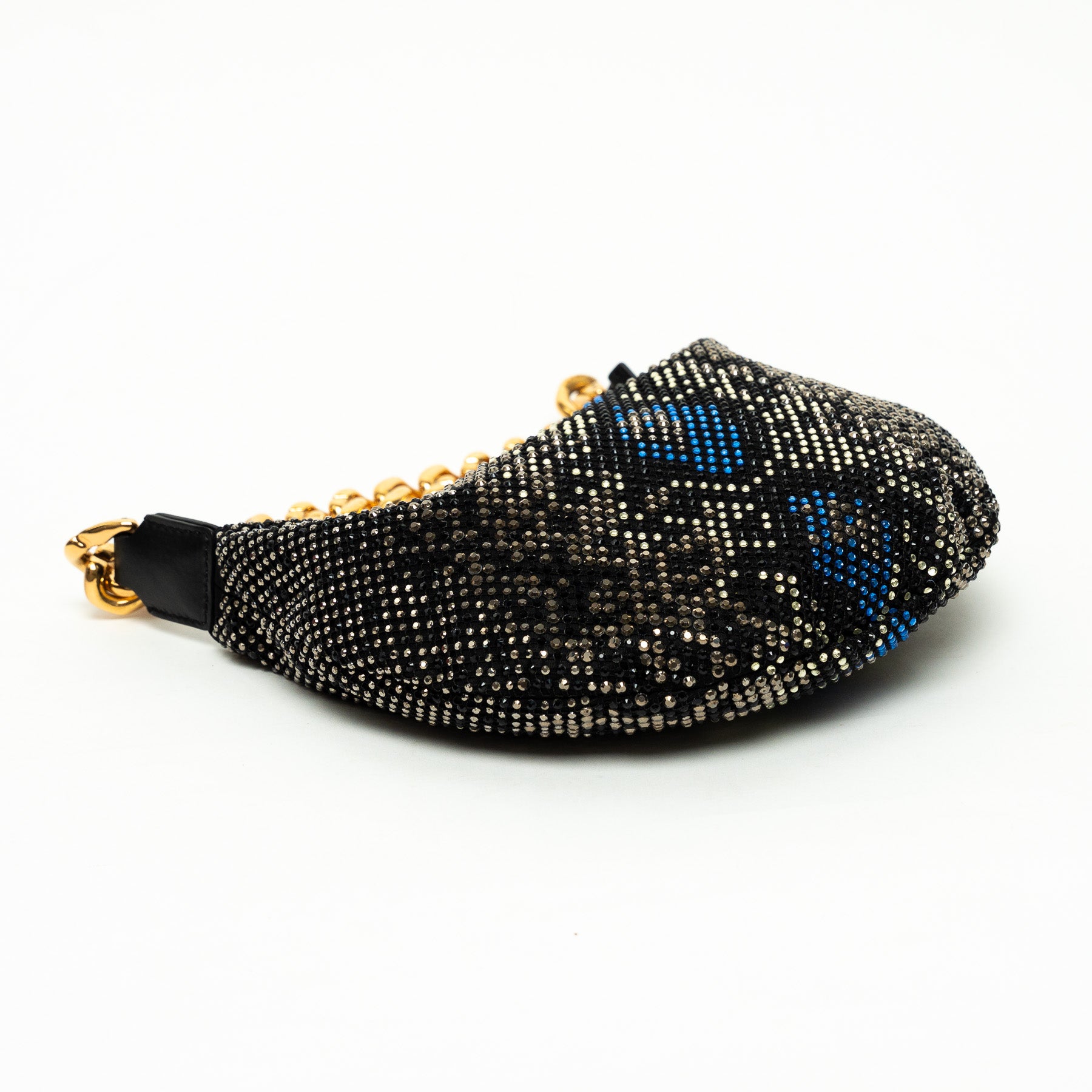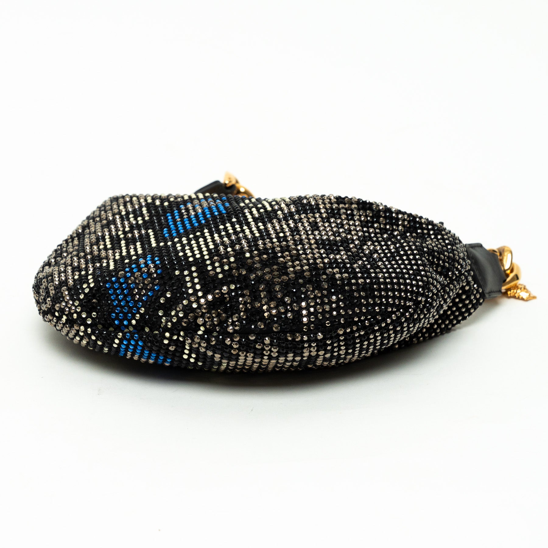 Versace Black Textile Multicolor Sequin Python Pattern Hobo Bag
