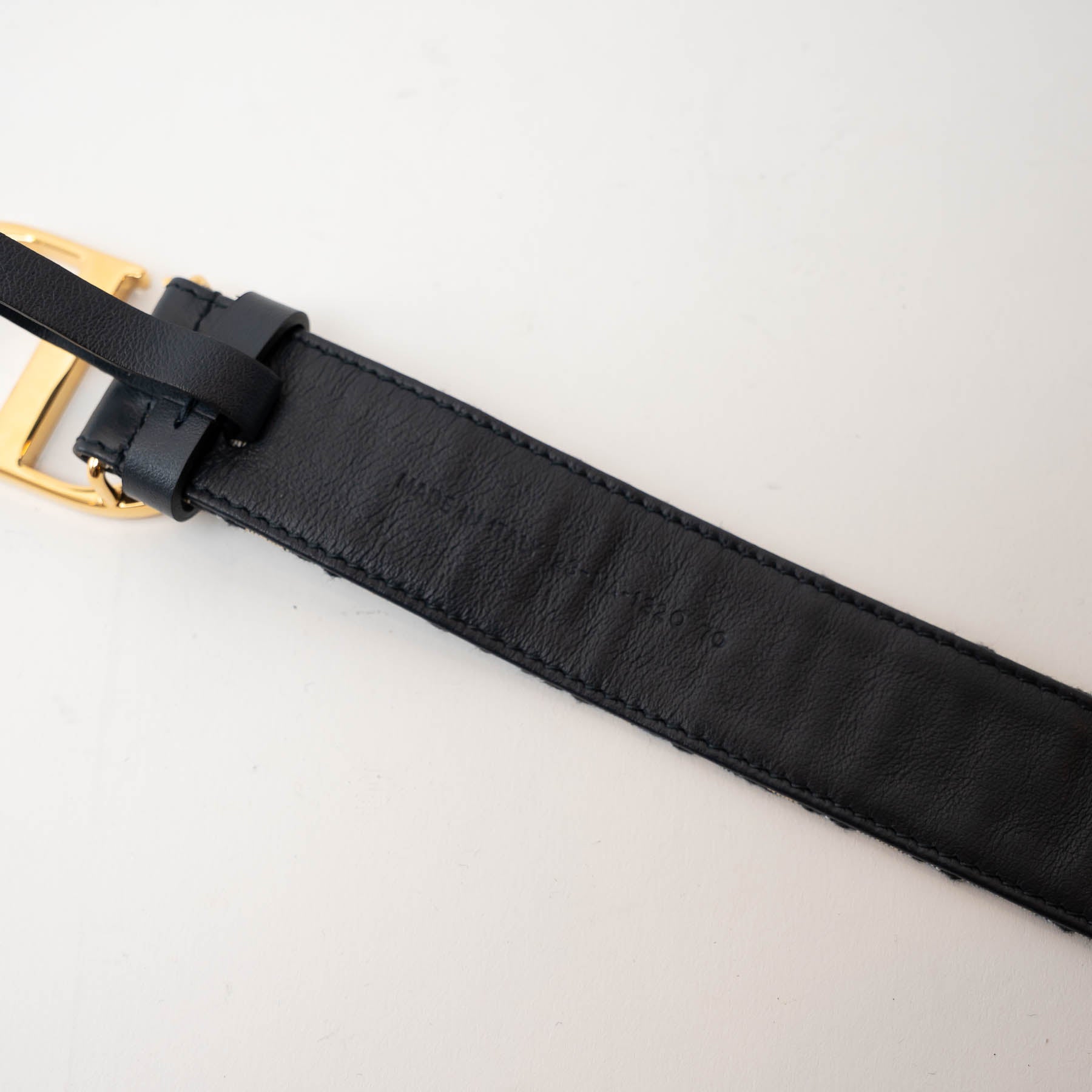 Dior Gold Buckle Black Leather Patterned Canvas Belt Size 70/27"