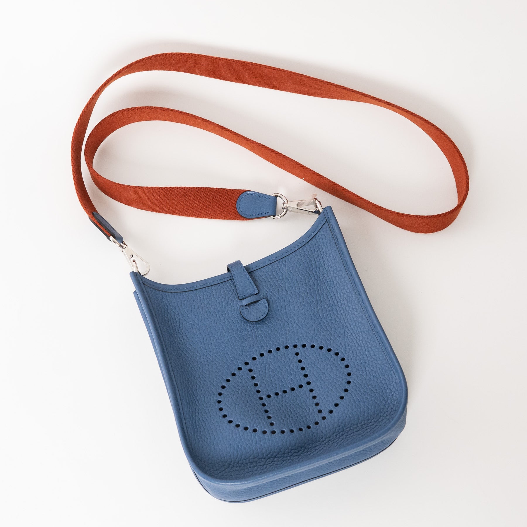 Hermes Blue Tie Clemence Leather Mini Evelyne 16