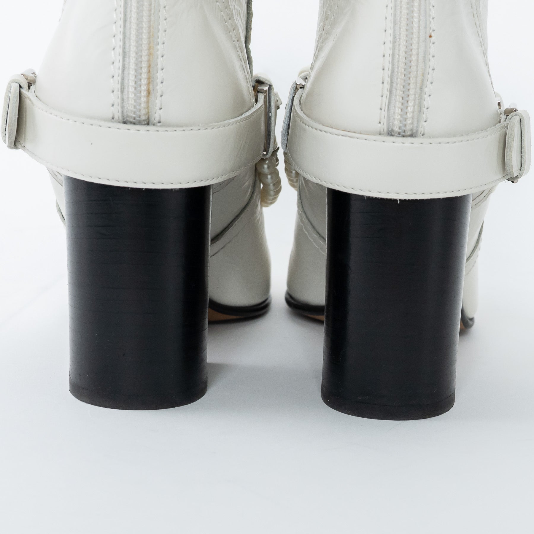 Pre-Loved Chanel™ White Leather Faux Pearl Boots Size 38.5