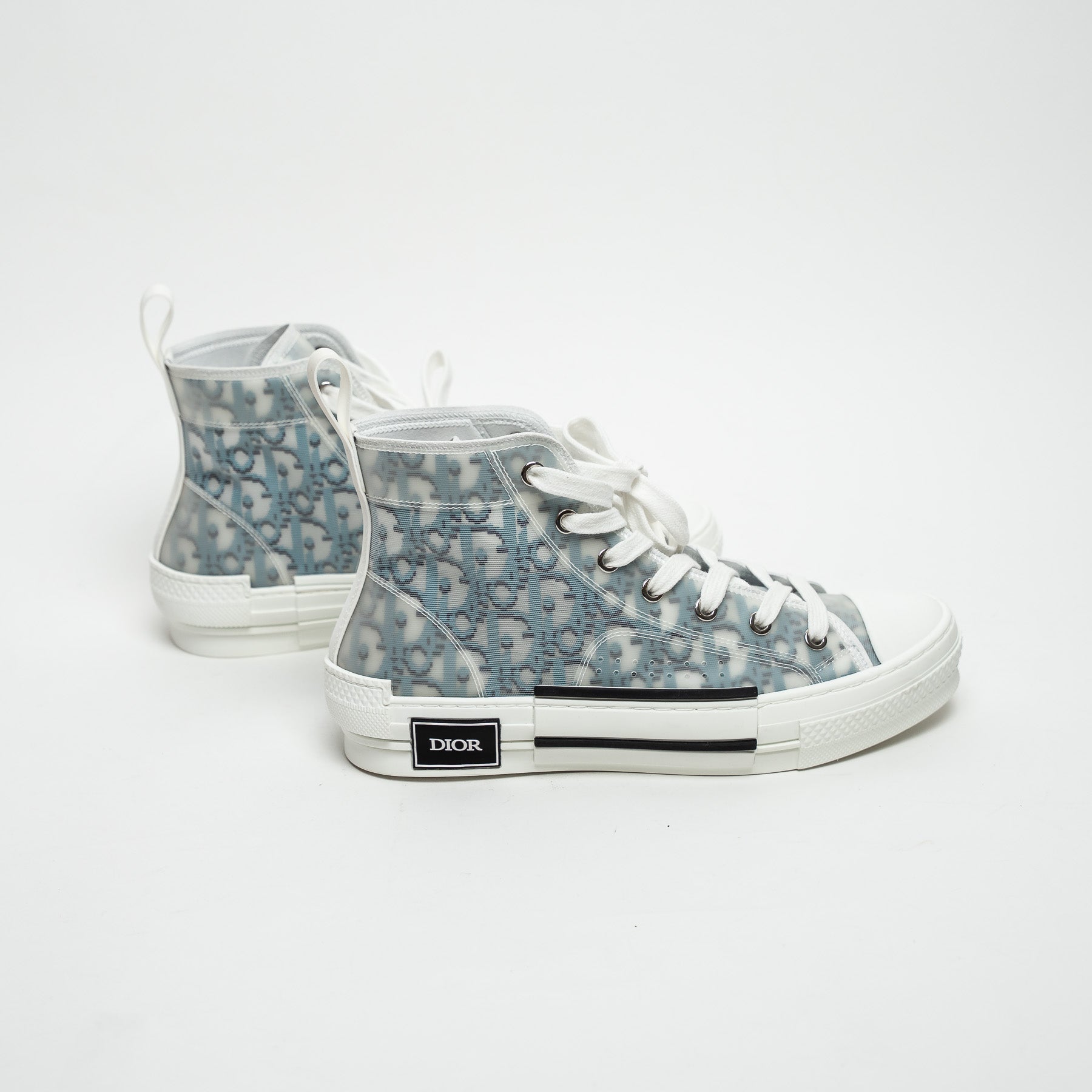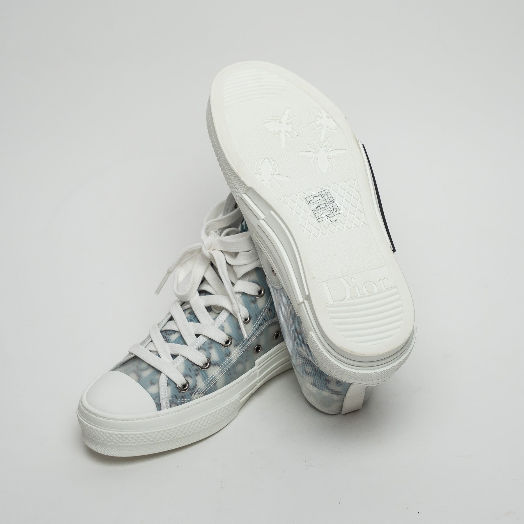 Dior White and Blue Oblique Canvas B23 League High-Top Sneaker Size 38