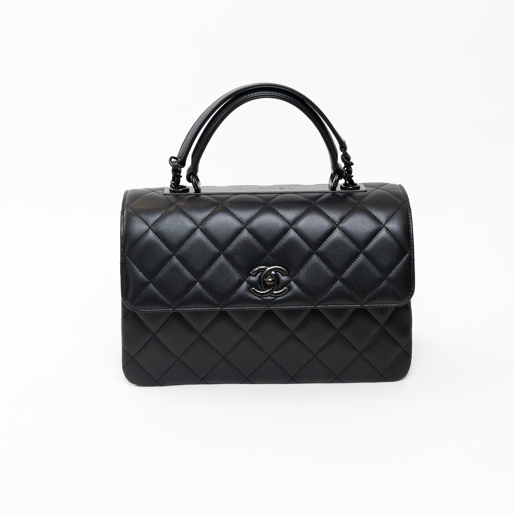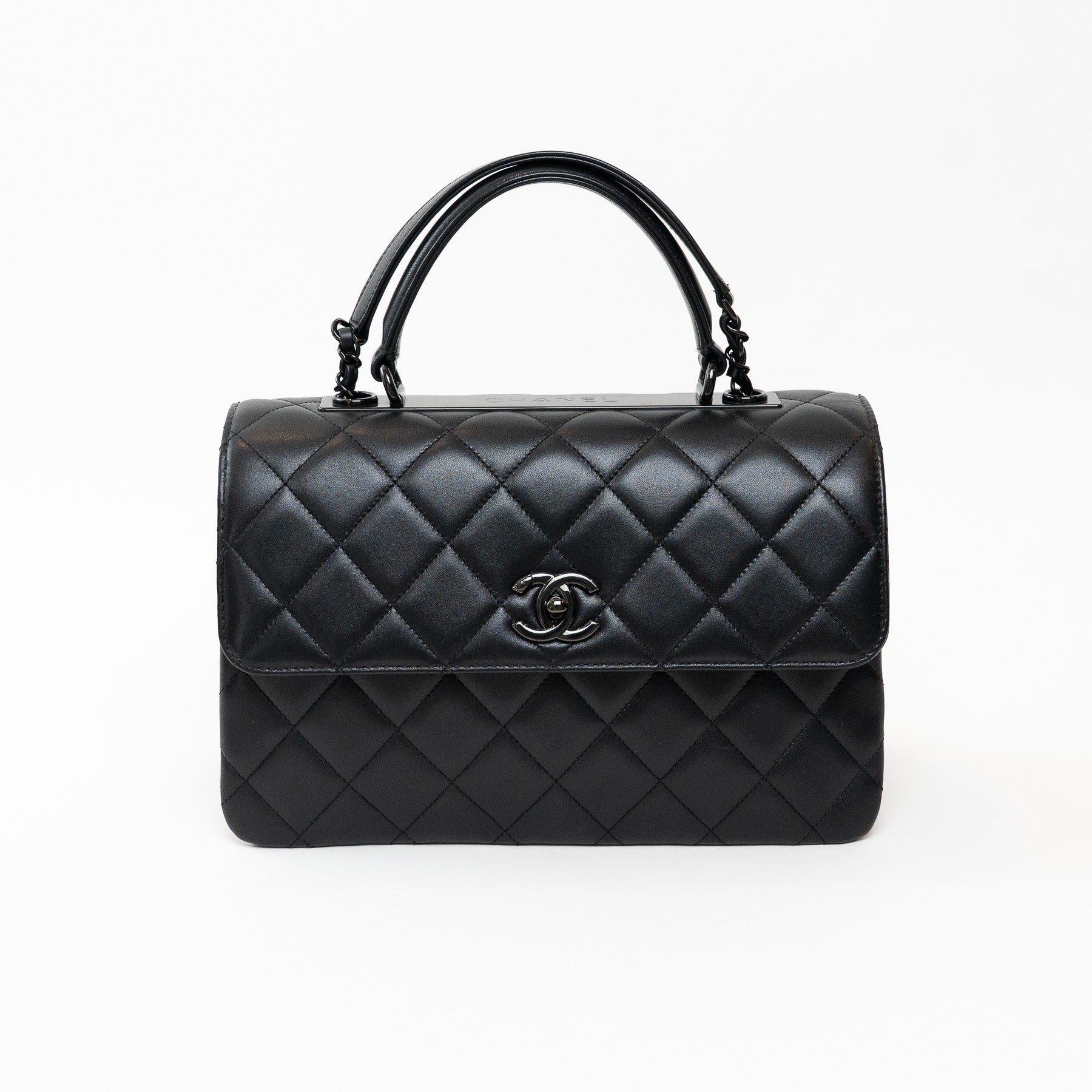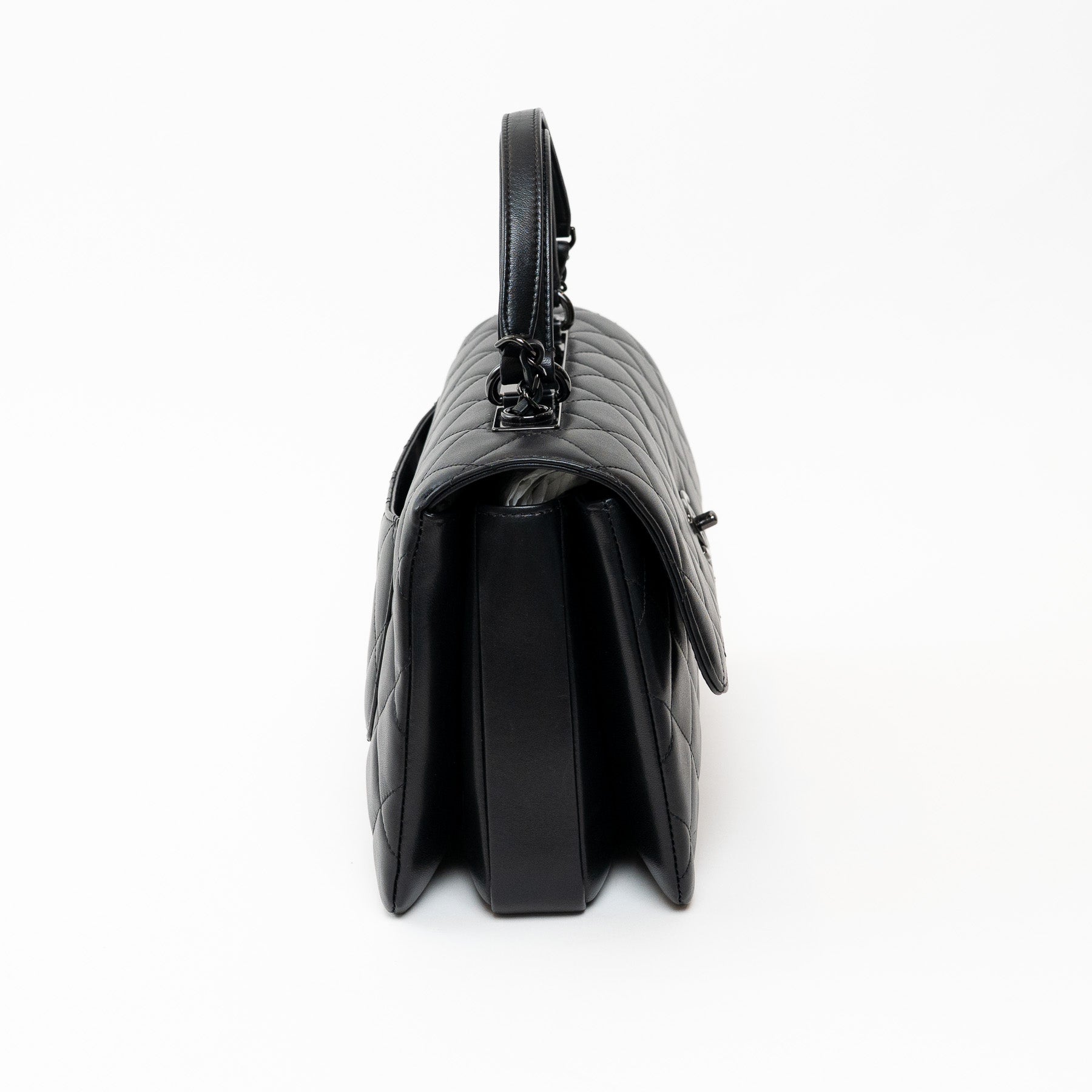 Pre-Loved Chanel™ Black Grained Quilted Leather Large Trendy Bag