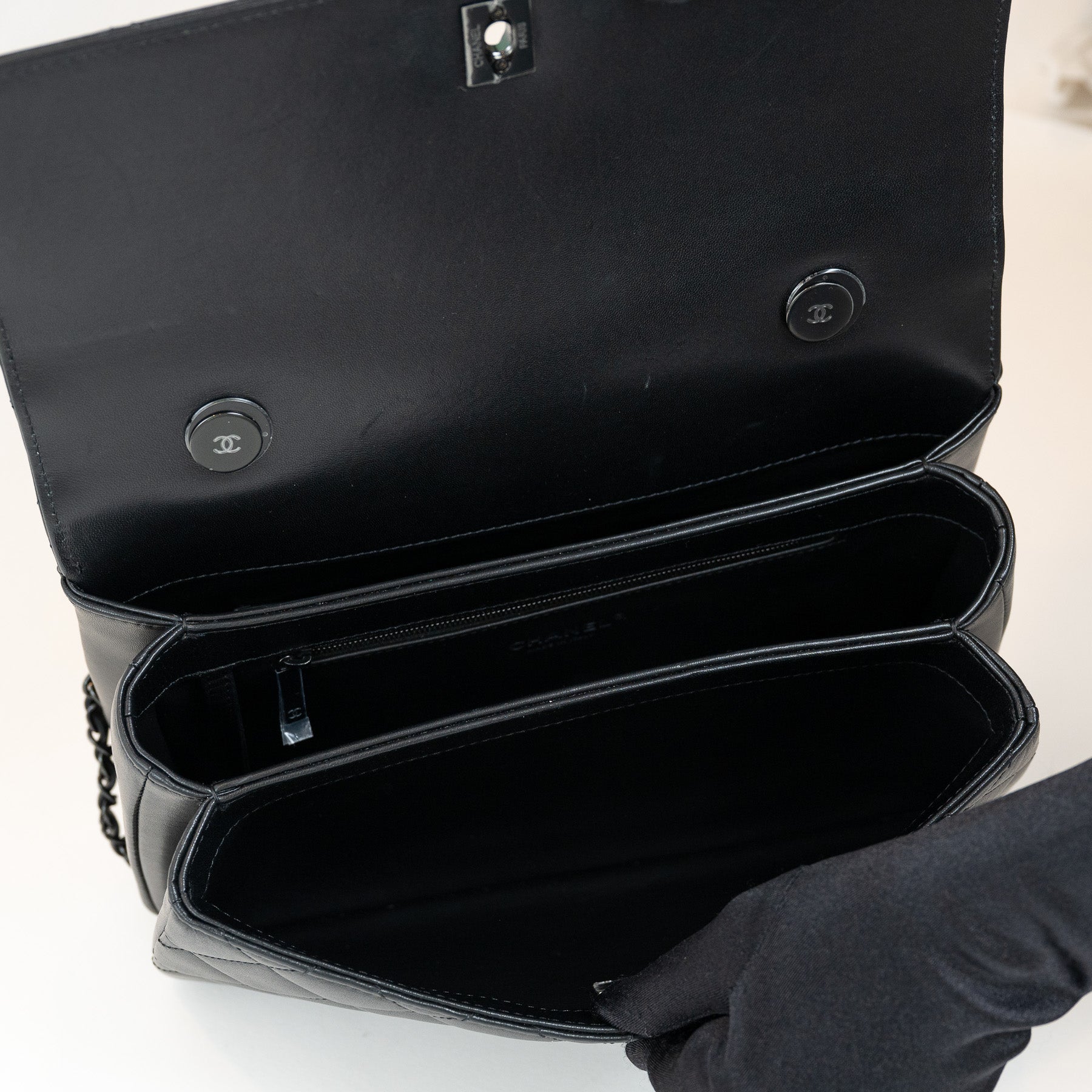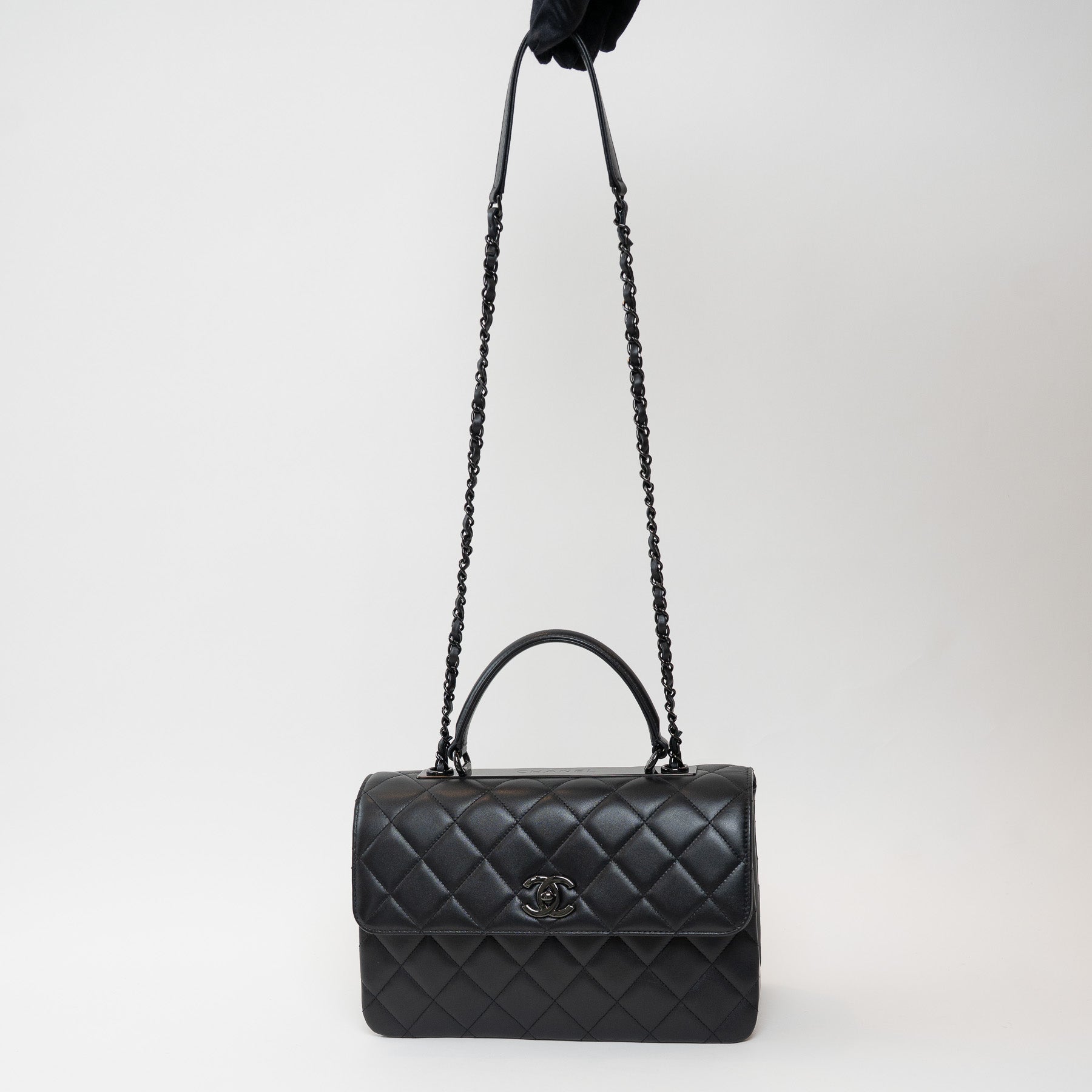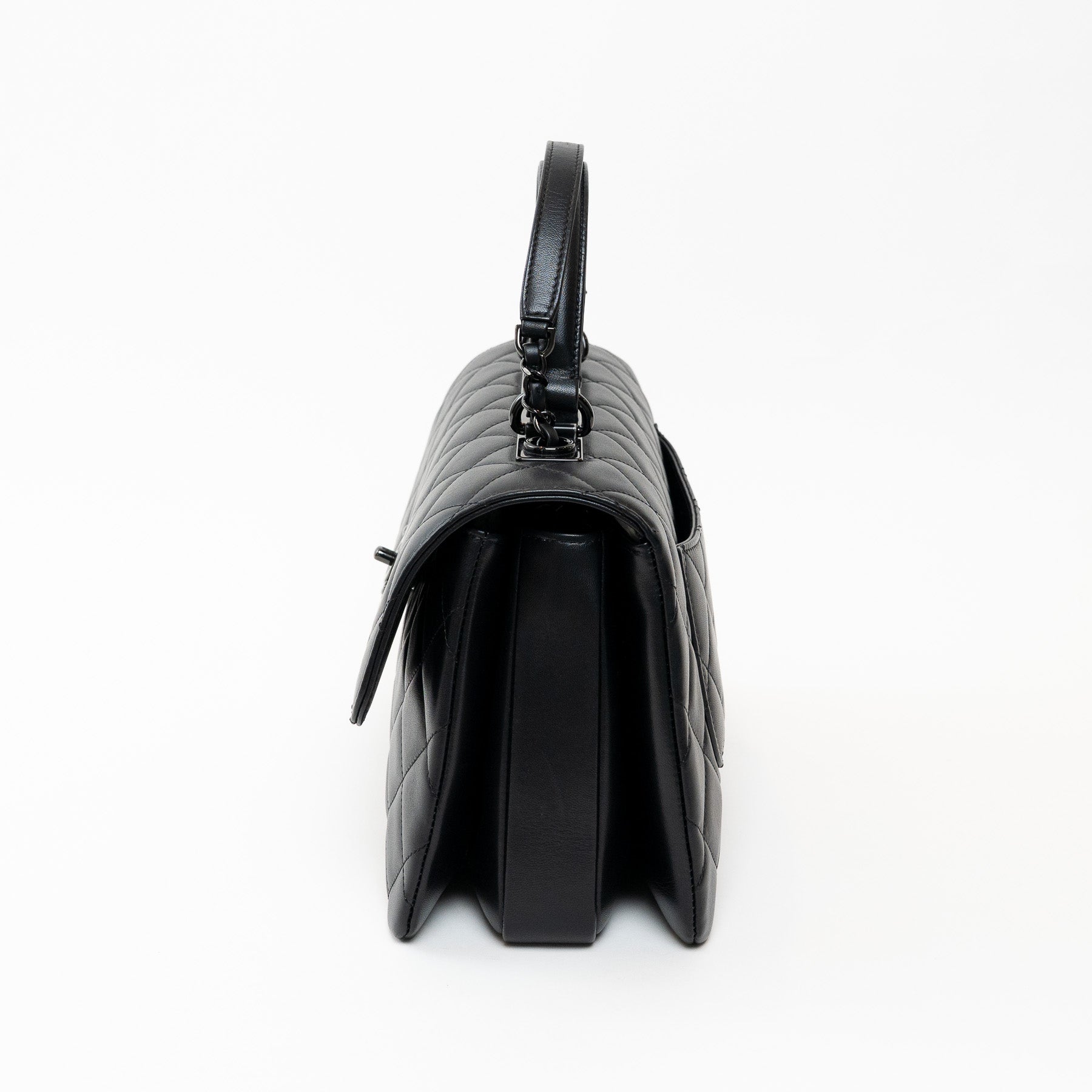 Pre-Loved Chanel™ Black Grained Quilted Leather Large Trendy Bag
